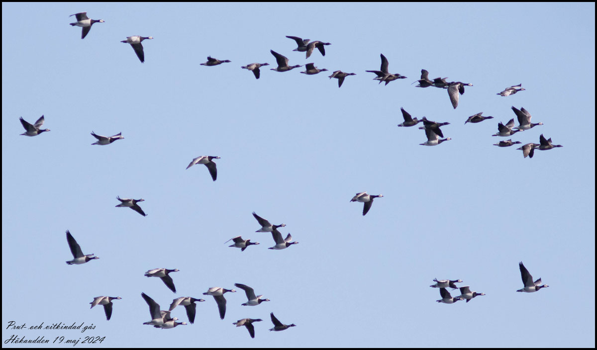 | 19 maj. Prutgås och vitkindad gås i blandade flockar. |