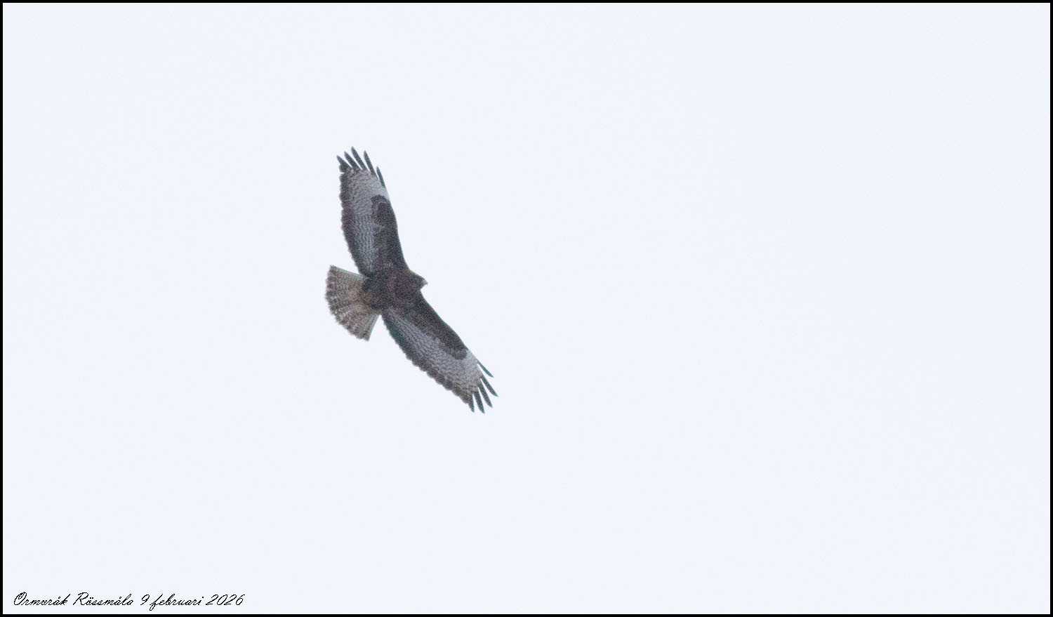 | 9 februari. Det har varit mycket få fototillfällen i februari men för att ha något att visa tog jag ett par bilder på en förbiflygande ormvråk. Den här var minst dålig! |