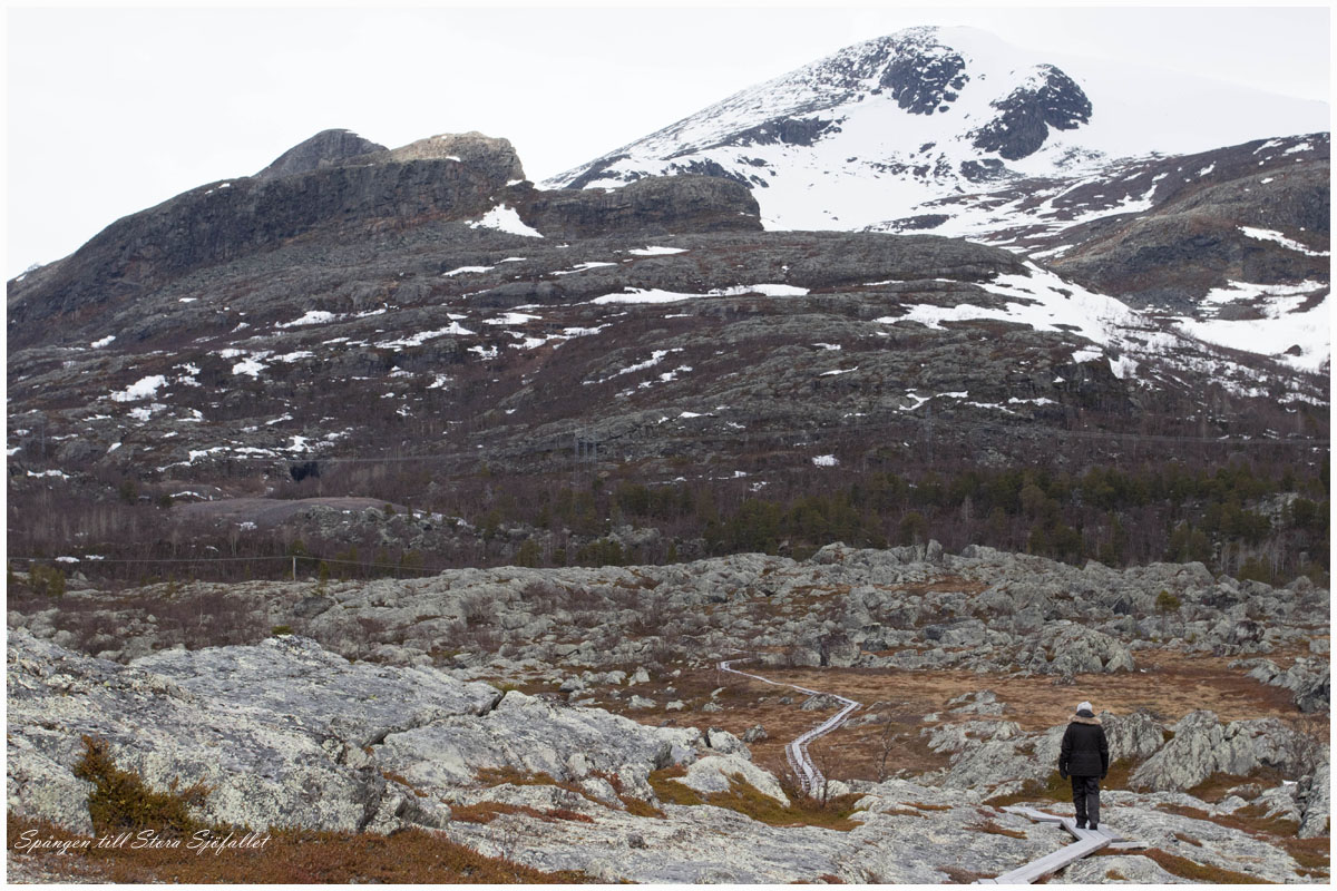 Spången ut till vattenfallet Stora sjöfallet som get namn till nationalparken.