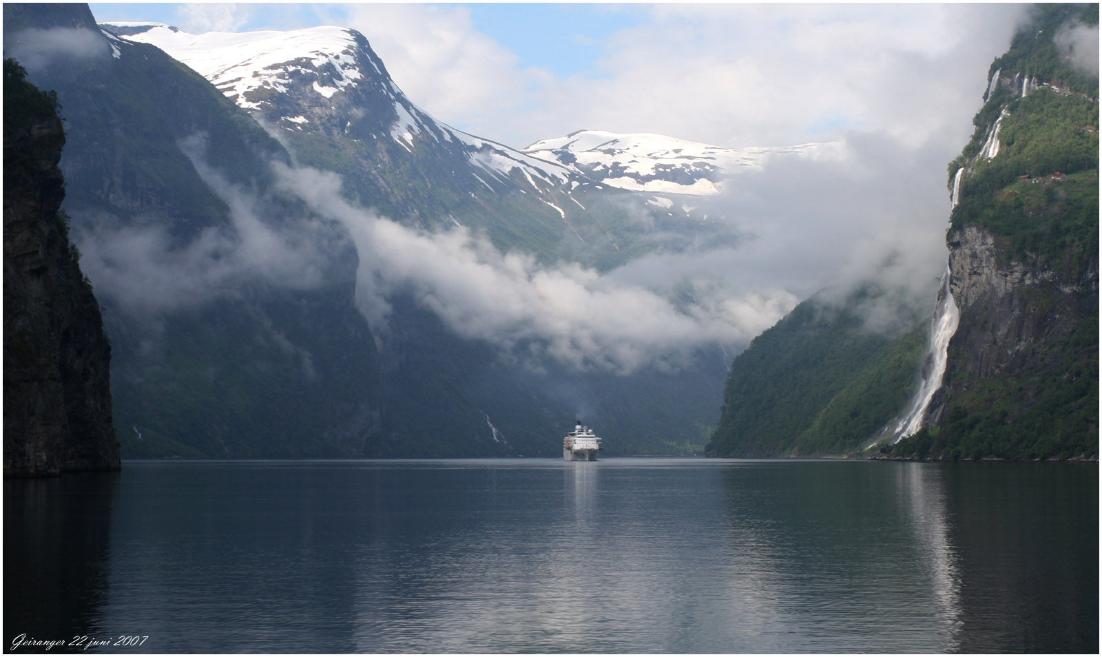 nivån och kommer ner till havsnivån i Geiranger.