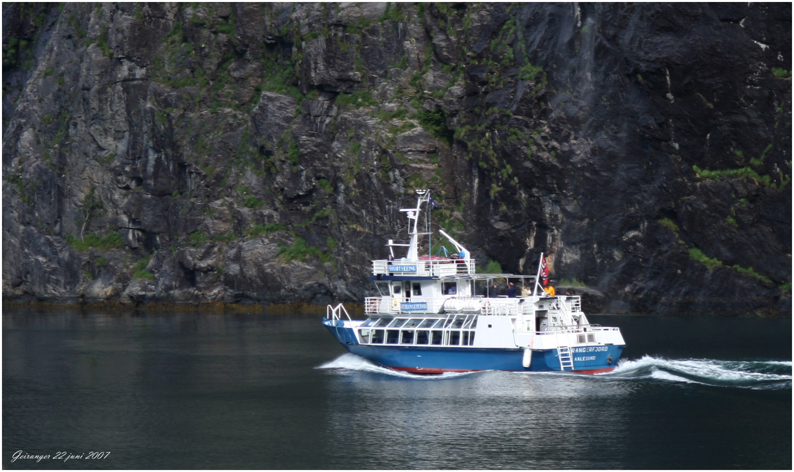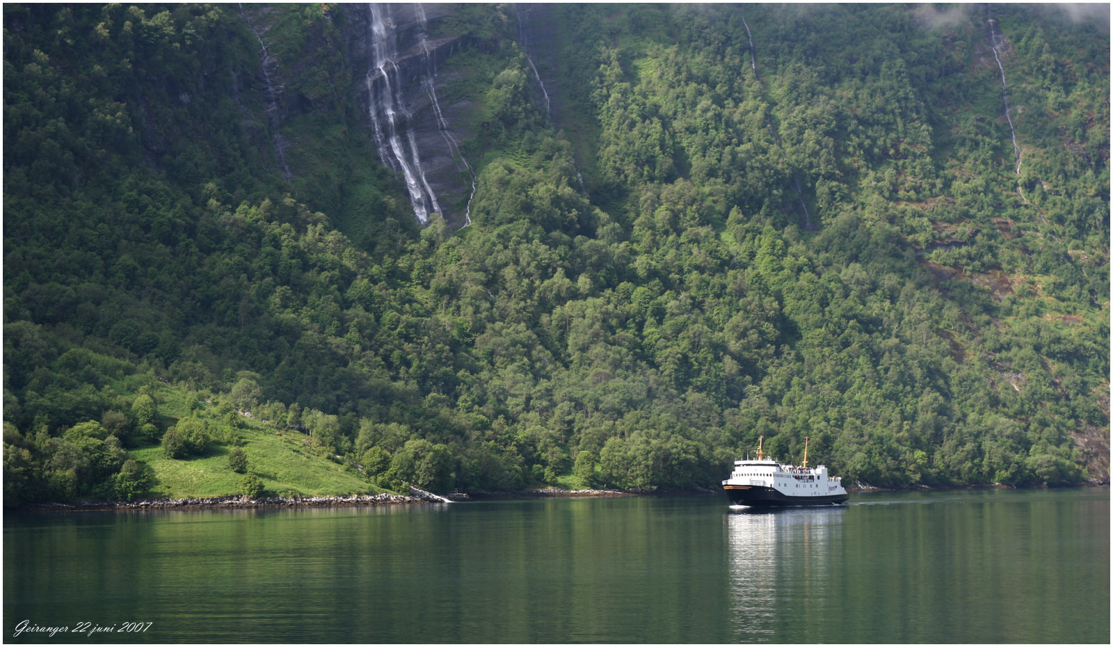 från Geiranger till Hellesylt tar dryga timmen. Båten är full av