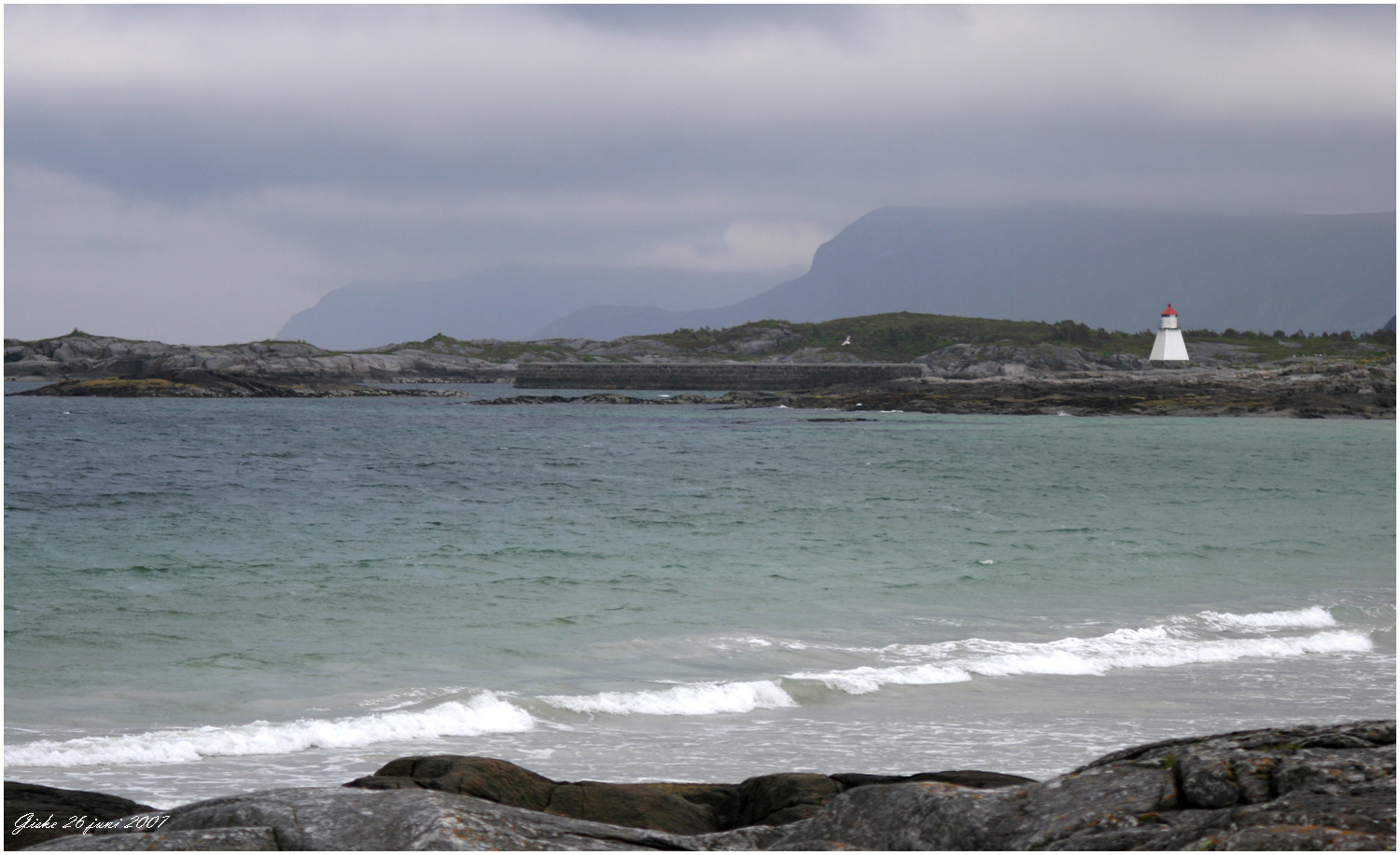 Makkevika fanns också en storlabb som poserar på en sten med Alnes fyr