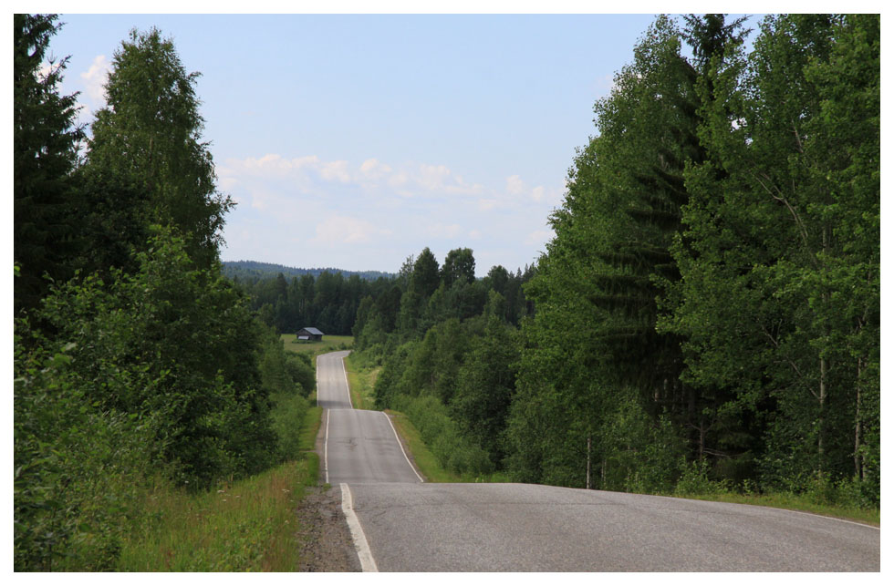 Som vanligt letar vi upp de mindre vägarna. Bilden är från Laukalla med sjungande gransångare till höger om vägen. |