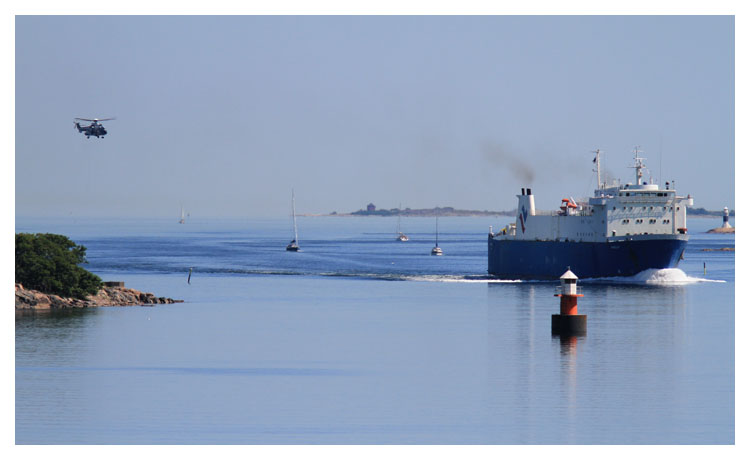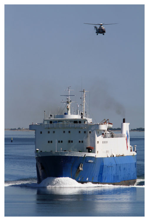 om helikoptern följde fartyget Kapella i den trånga farleden. |