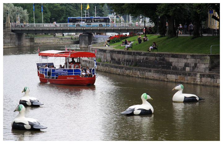 Jätteejdrarna i ån ingick i ett kulturarrangemang. Det gjorde inte den lilla röda turistbåten Pikku-Pukki. |