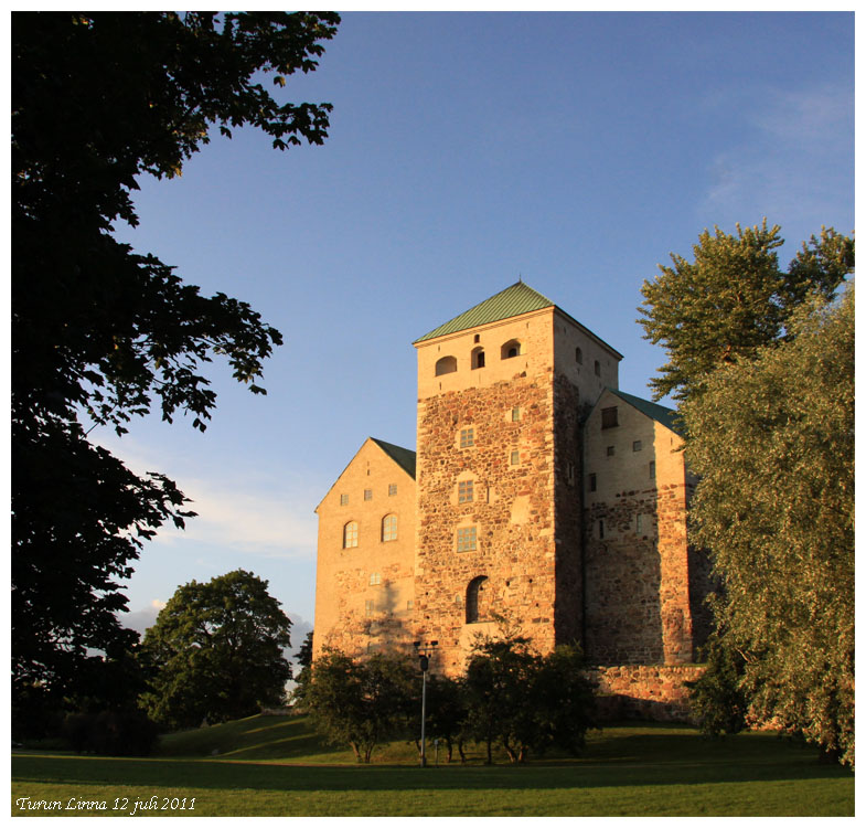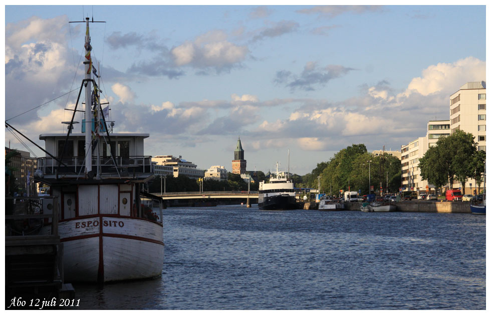 11 juli. Idag går resan mot Åbo. Vid Tyrvis stannar vi till för att titta på den medeltida kyrkan. Den förstördes i en brand men har restaurerats efter alla konstens regler. Läs gärna mer om kyrkan här. |