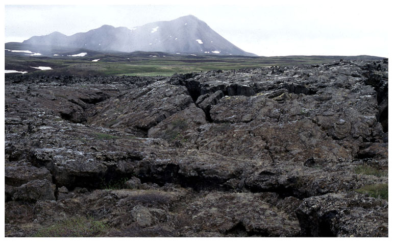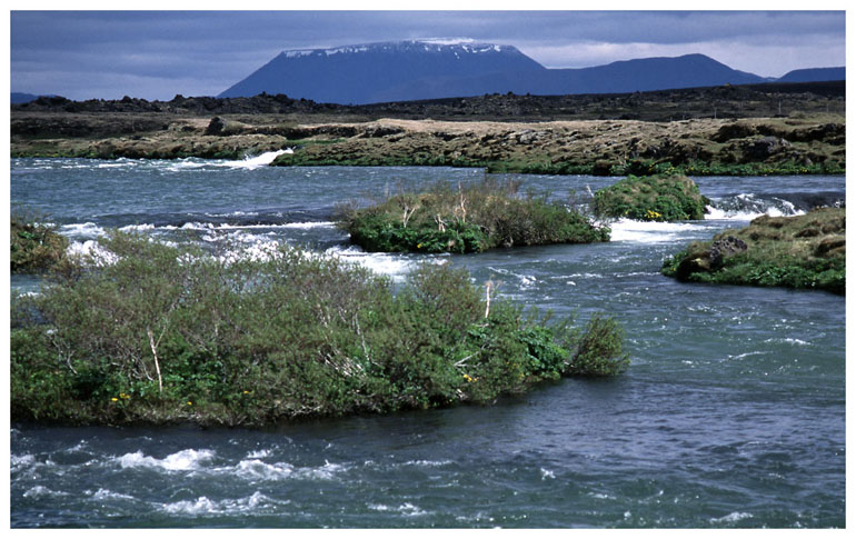 Laxaa med den gamla vulkanen Hverfell i bakgrunden.