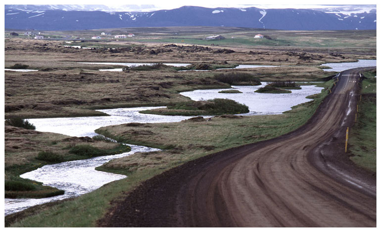 Riksväg 1 går intill Laxaa som är Myvatns utlopp.