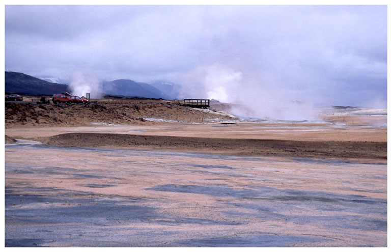 Nordost om Myvatn vid Reykjalid finns områden med varm gyttja.