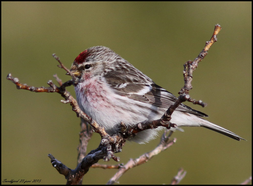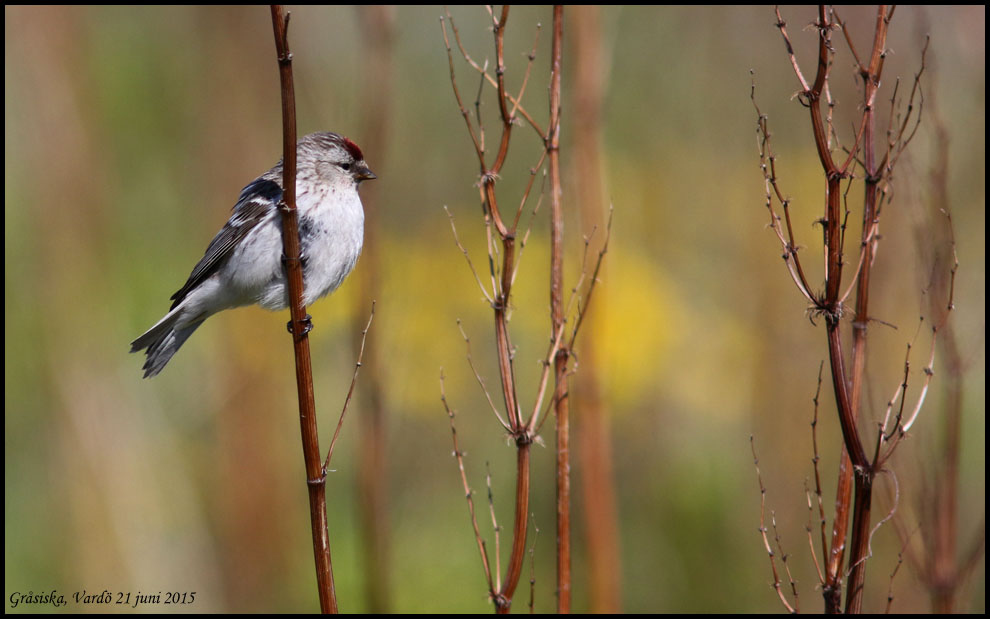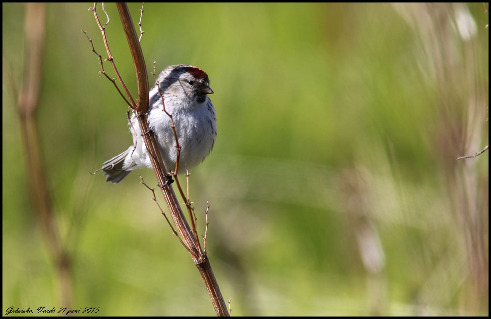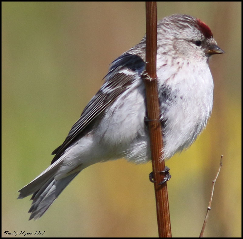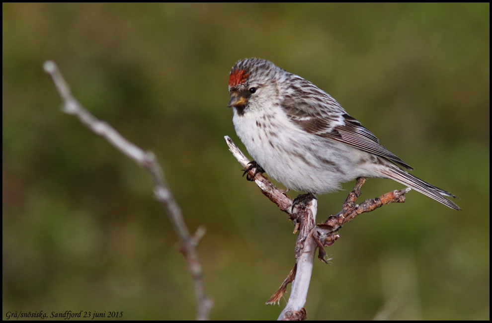Samma bild som den ovanför men croppad. Det här borde väl vara en snösiska? Mycket tunn linje på största undre stjärttäckaren, nästan inga flankstreck och liten näbb.