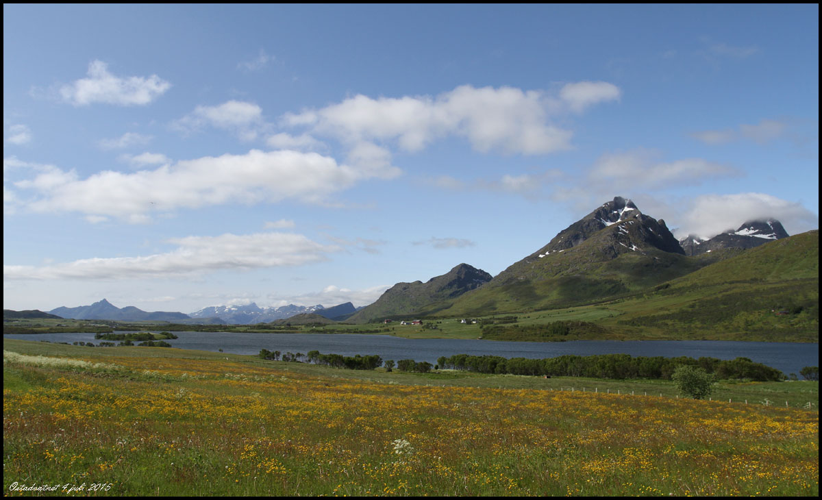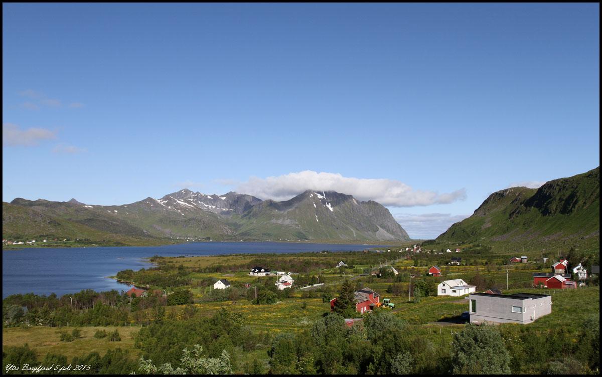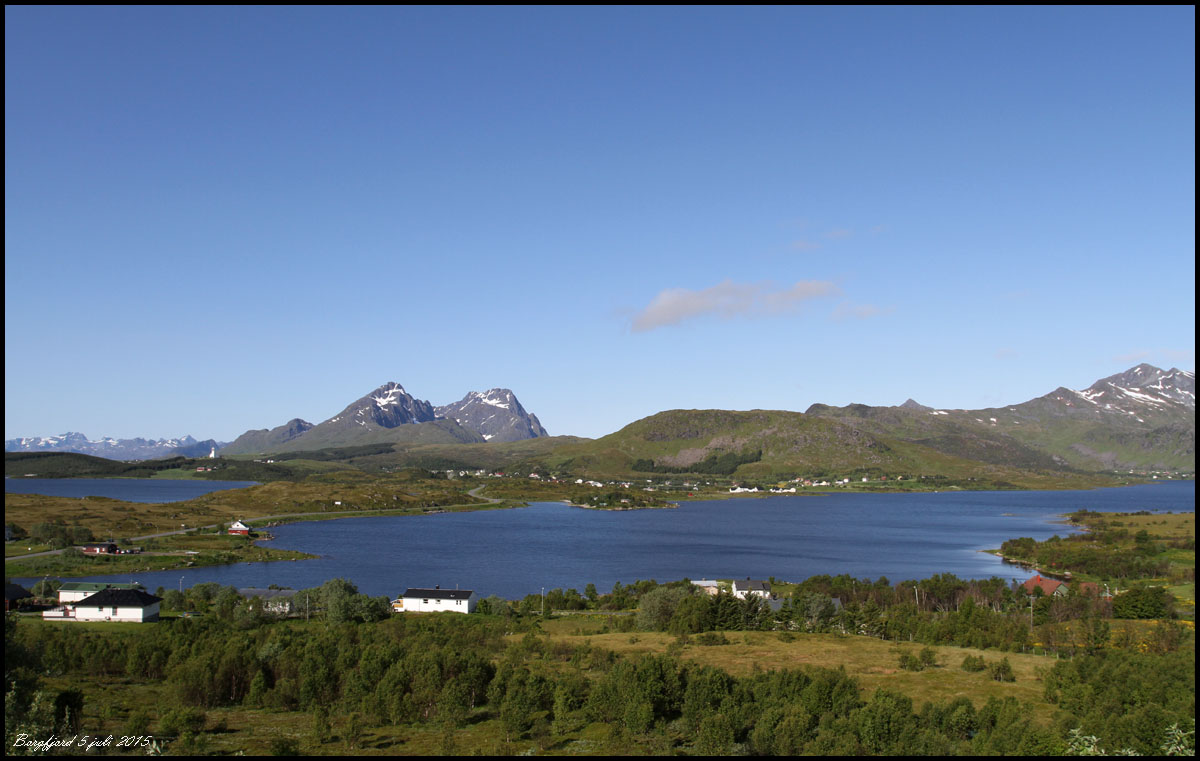 Vi lämnar Ballstad på morgonen. Strålande väder men fantastiska landskapsvyer. |