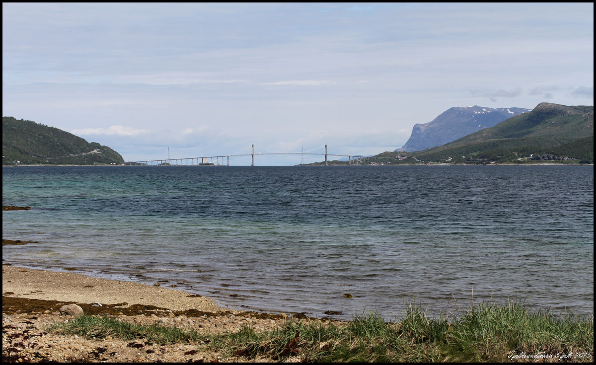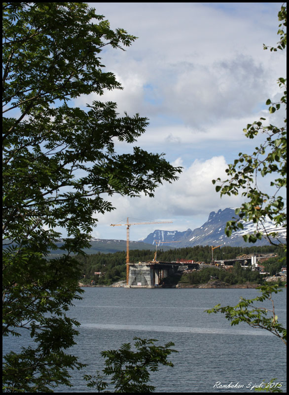 | Vi lämnar Norge på kvällen den 5 juli efter ett kort besök i Narvik. En ny bro byggs över fjorden. |