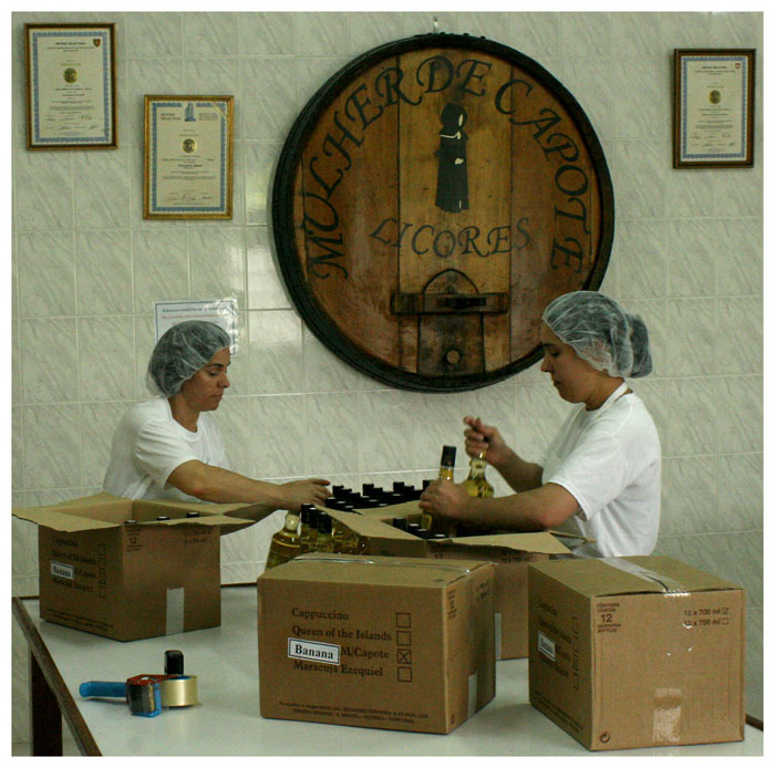 Flaskorna med likör av olika slag packas.