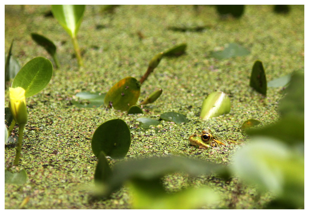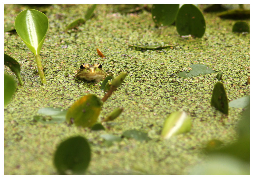 I några små dammar fanns grodor som hördes hela tiden men som tystnade när