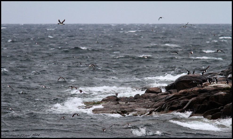 24 juni tog vi båten från Gudhjem till Christiansö. På en av öarna, Gräsö, häckar tordmule och sillgrissla och trafiken till och från ön är intensiv. Båten passerar nära ön och då fanns goda fototillfällen. |