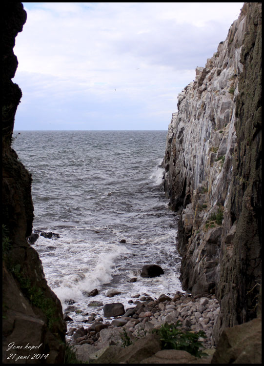 | Vid Jons kapel som är en hög tornliknande klippa, häckar sillgrisslor och tordmular. Här finns bilder för den som gillar fågelbilder. |