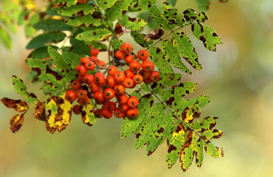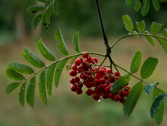 | 5 augusti. Gott om rönnbär i år. Det finns också en del nötter på hasselbuskarna. |