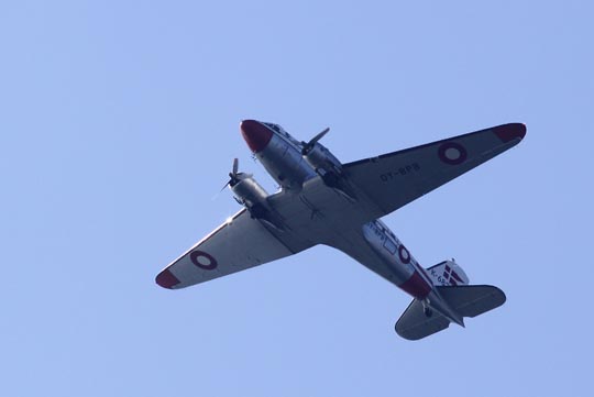 | Den här flygfarkosten är också fräsch för sin ålder! Hon ser väl ut som en DC3a eller något sånt. Hon kom från danmarkshållet som flaggan på stjärtfenan antyder och höll kurs mot nordnordost på låg höjd. |