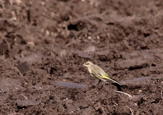 | På en upplöjd tidigare betesmark sprang en grupp unga gulärlor omkring. |