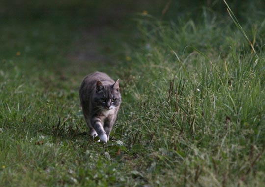 | 19 augusti. Kvällspromenad med katten Olga i hasorna hela vägen ner till sjön. |