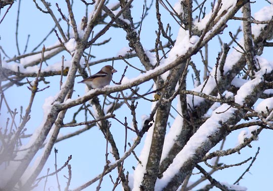 | Också stenknäck ses i äppleträdet men också i slånsnåren. Det gick inte att komma nära. |
