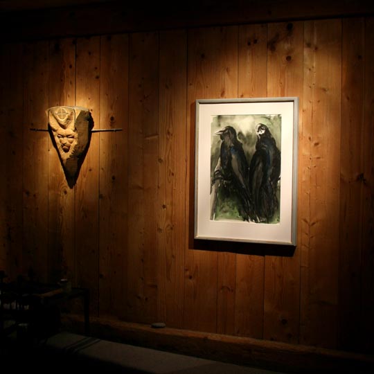del akvareller. Utställningen gav vibbar av mörk medeltid och tider ännu