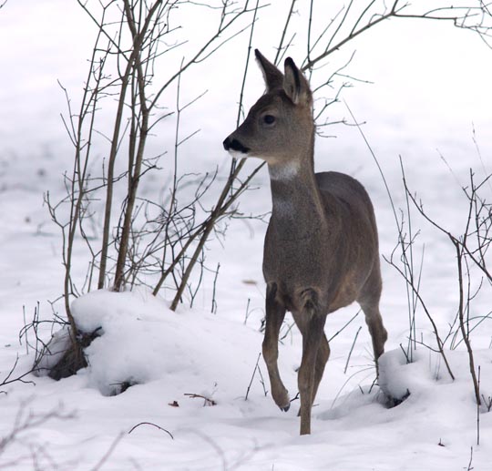 Råbocken stod i solen mitt ute på hygget hitom Linnersmåla. Skaplig bild tyckte jag då jag fick upp den på datorskärmen. Men vad finns i bakgrunden? Två älgar som ingen av oss såg när bilden togs. De är fantastiska på att inte synas, trots starkt solljus mitt på dagen. |