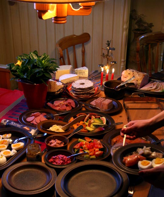 gnistrande vinterdag med pudersnö. Men julbordet dignade som vanligt. Jag ökade min vikt med 2,5 kilo från morgon till kväll! |