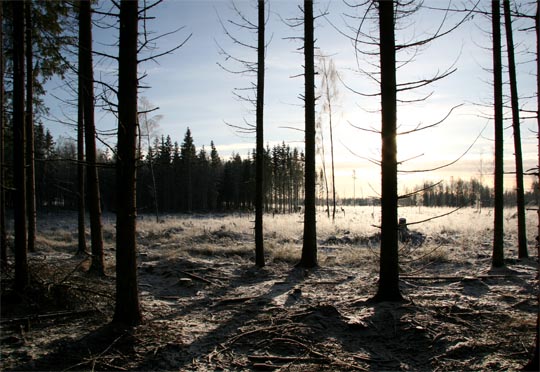 har varit fullmåne och minus 12 grader i natt. Vi har tagit en promenad över skogen (eller vad det ska kallas) till Linnersmåla. Det mesta är hyggen och traktorspår. Vi såg i stort sett inga fåglar. En ringduva flög förbi, två korpar och några kungsfåglar. Gott nytt år, du som hittat sidan med mina bilder. Hoppas att bilderna har varit intressanta, vackra eller något annat. |