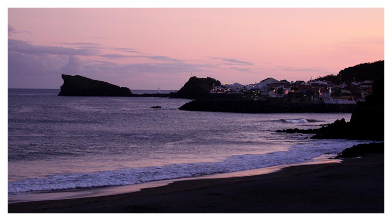 färdig. På bilden ovanför syns utsikten från hotellets balkong den 15 juli, sista kvällen på Azorerna. |