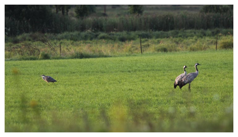 skådning. Tranorna intill vägen genom Jät har fått sällskap av en häger, en kanske inte alltför vanlig konstellation (nedan). |