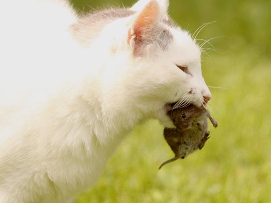 | Ofta kommer våra två katter med sorkar och man kan ju tycka att selektionen borde ha raderat ett sådant katastrofalt beteende som sorken visade prov på. Men så är det inte, det bara fortsätter dag efter dag. |