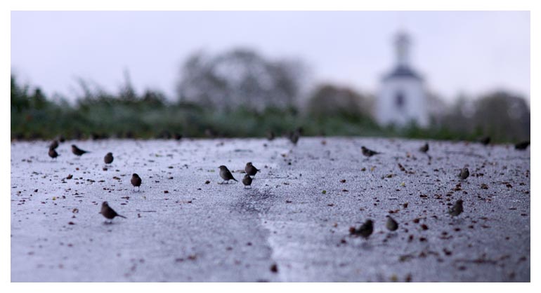 natt och hela dagen. Vid Skye sökte en flock bofinkar och bergfinkar föda