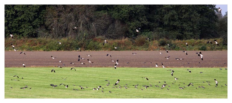 På samma plats ser jag också en stor flock på uppåt 300 tofsvipor. |