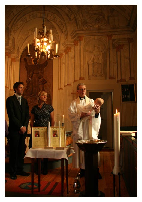 Emil döptes i Uråsa kyrka. Först Lovisa Ingeborg Viktoria och sedan Emil Anders. Efteråt blev det dopkaffe i församlingshemmet intill kyrkan. På bordet fanns blommorna som Lena plockade hemma i trädgården i Esbjörnamåla. |