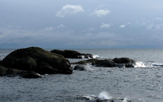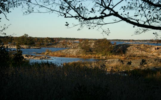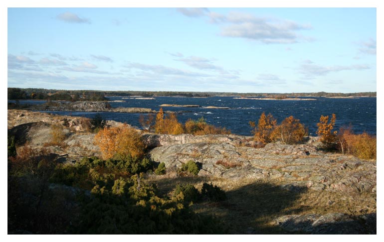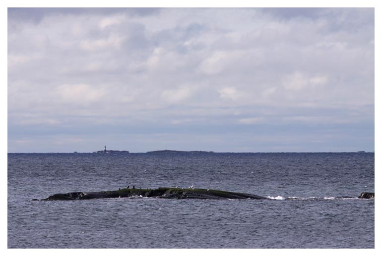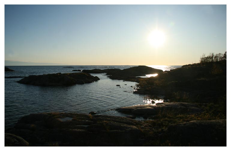 nord. En ung fiskmås sneddade över ön och viken som kallas Gräshålet. Eftermiddagens sena sol kastar långa skuggor över klipporna på östra sidan av ön. |