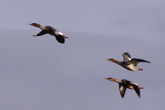 | Tre storskrakar passerade öns södra spets på väg till matplatser inne i skärgården. |