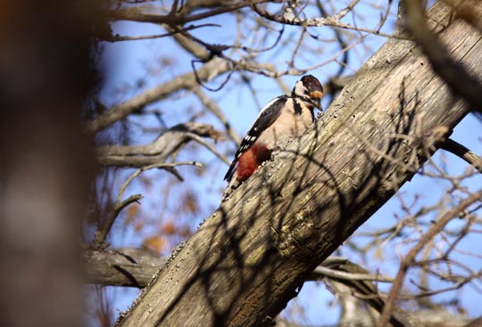 | Både större och mindre hackspett höll till inne i skogen. |