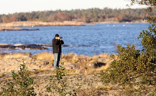 | 11 oktober. Söndag och resa till Södermanland i sällskap med Johan från Rottne. Målet för resan är förstås fågelstationen på Enskär. Det är åttonde besöket sedan 2002. Imorgon börjar älgjakten så de här djuren som betade en bit från vägen ner till Källvik mellan Nyköping ch Trosa kunde väl känna sig säkra ytterligare några timmar. | ||||