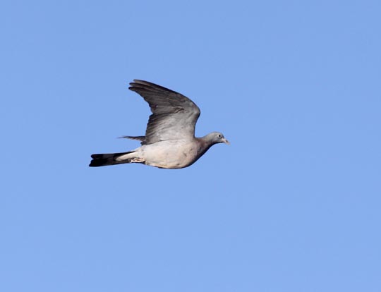 gryningen sjöng en sparvuggla på andra sidan vägen. Jag satt på min stol borta vid lagårn en dryg timme från kl 9 men det hände inte jättemycket. Det sträckte glesa, små grupper av finkar mot sydväst, likaså fyra flockar med ringduvor samma riktning. Totalt var det nästan 300 fåglar. Enda rovfågeln blev en sparvhök på långt håll. |