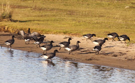 Vi gick ut till spetsen på Örarevet som vanligt. Underbart väder! En flock orädda prutgäss rastade. |