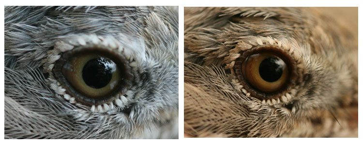 Unga törnsångare har nästan svart iris men med ökande ålder ändras färgen till gråoliv, beigegul eller gulbrun. Yttre delen av iris är brun eller rödbrun. Jag tänkte plåta iris men det fungerar inte! Bilden visar samma adulta fågel men med ändrad vitbalans. Otroligt att bildens färg ändras så mycket. |