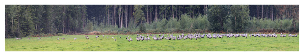 Söder om nya kyrkan i Jät rastade en tranflock som bestod av minst 180 exemplar. Bilden är sammansatt av tre exponeringar. |