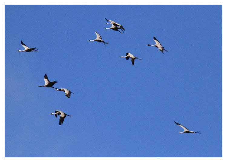 28 augusti. En flock med tranor roade sig i den friska västvinden. De var inte sträckande. |