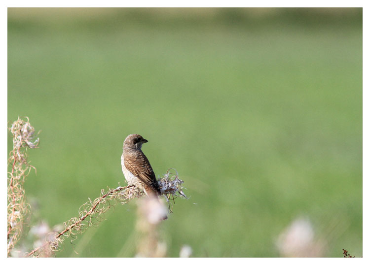 ingen blåhake. Vi får vänta ett tag till. På väg till bilen fick jag en skaplig bild på en ung törnskata. Åldern avgörs av den "fjälliga" ryggsidan. |