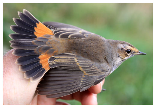 | 8 september. Ringmärkandet är sedan en vecka förlagd till Djurle våtmark. Idag har vi märkt årets första blåhake, en ung hanne. |