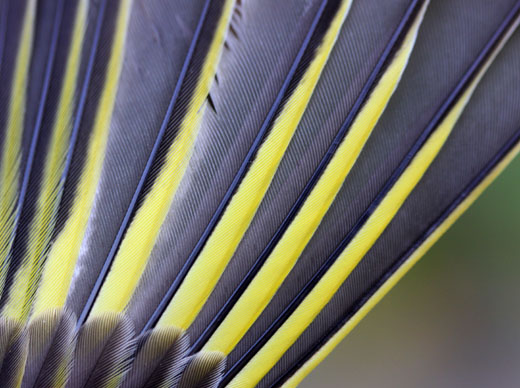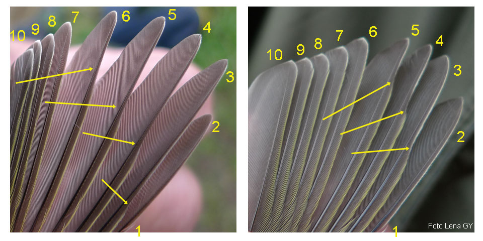 visar de gula ytterfanen på handpennorna. Det gula når fram till skaftet