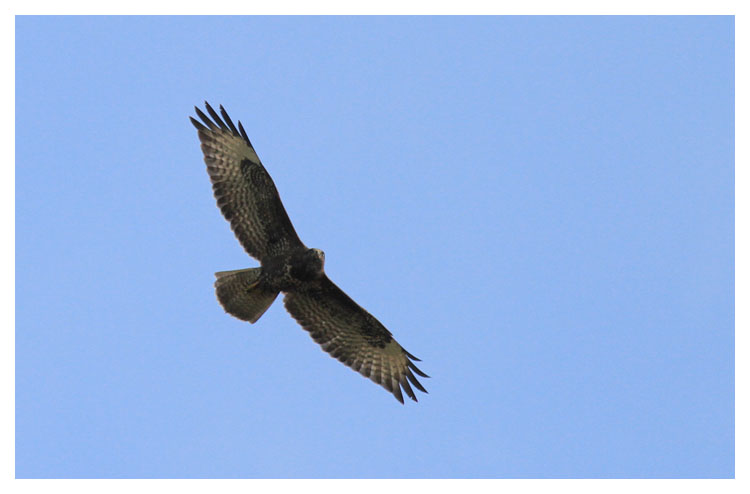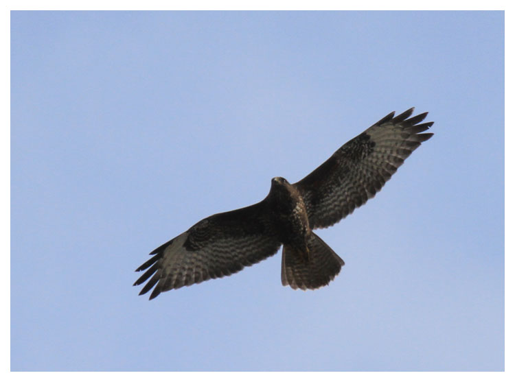 | 17 september. Sara och barnen har hälsat på idag. Vi gick en promenad norr om Esbjörnamåla och såg den här ormvråken i den vackra höstvädret. Vi hade också ett tjugotal mindre korsnäbbar. |