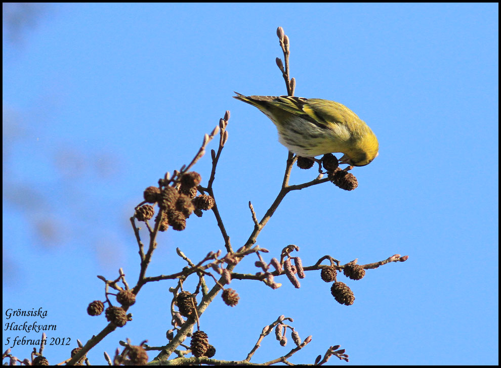 5 februari. Vintervädret håller i sig med nattemperaturer på omkring 16 minusgrader. Jag har besökt Hackekvarn och fick lite bilder på knipor och grönsiskor. |