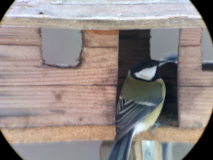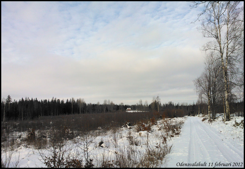 11 februari. Vi har köpt varsin "smartphone" som vi nu försöker lära oss. Den här bilden från dagens promenad blev ju bra. Talgoxen är tagen genom tuben med 60 gånger förstoring genom glasrutan! Men det gick ju rätt bra det också. |
